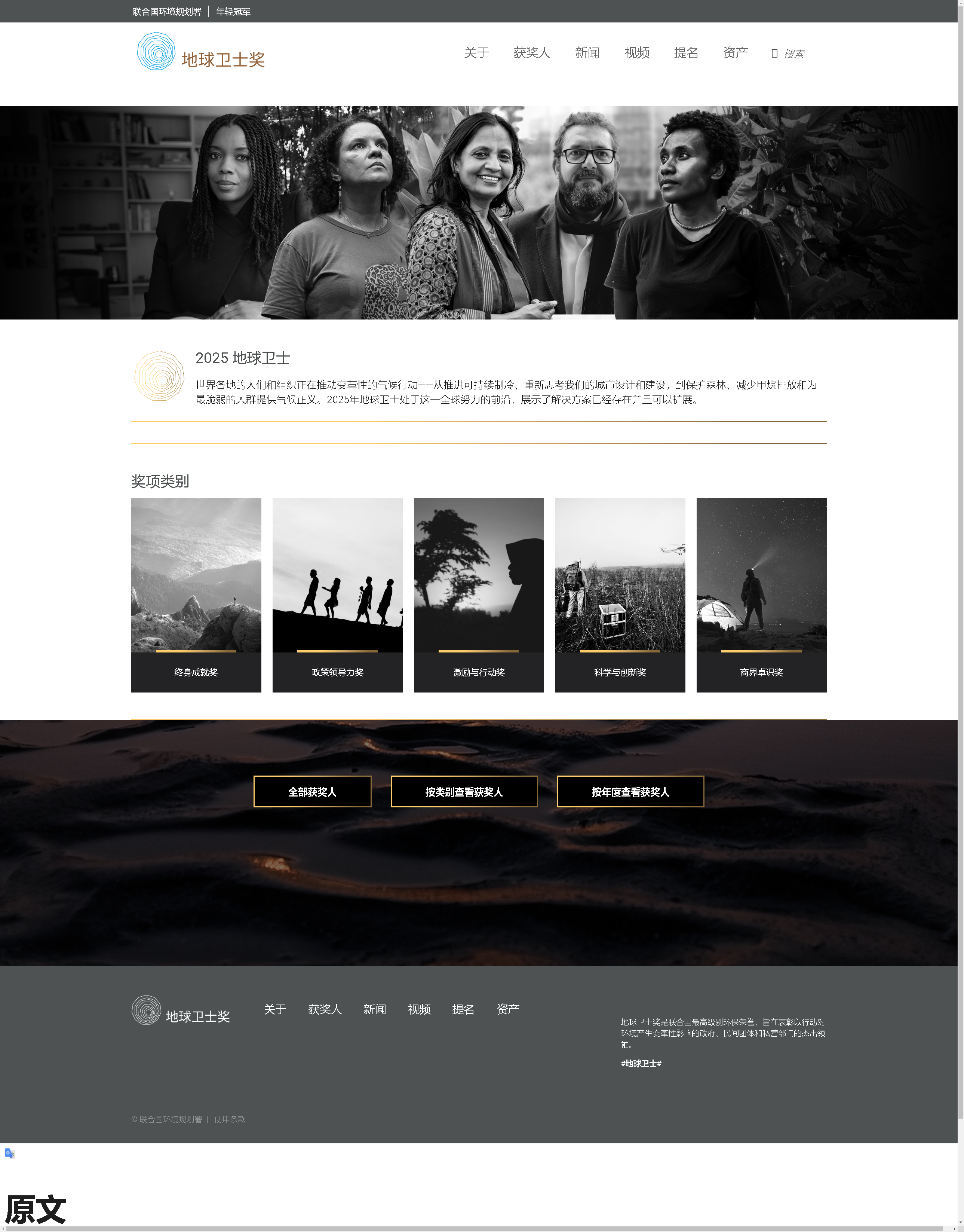 一年一度的“地球衛(wèi)士獎(jiǎng)”是聯(lián)合國(guó)頒發(fā)的最高級(jí)別環(huán)境獎(jiǎng)項(xiàng),旨在表彰對(duì)環(huán)境產(chǎn)生變革性影響的個(gè)人和組織。