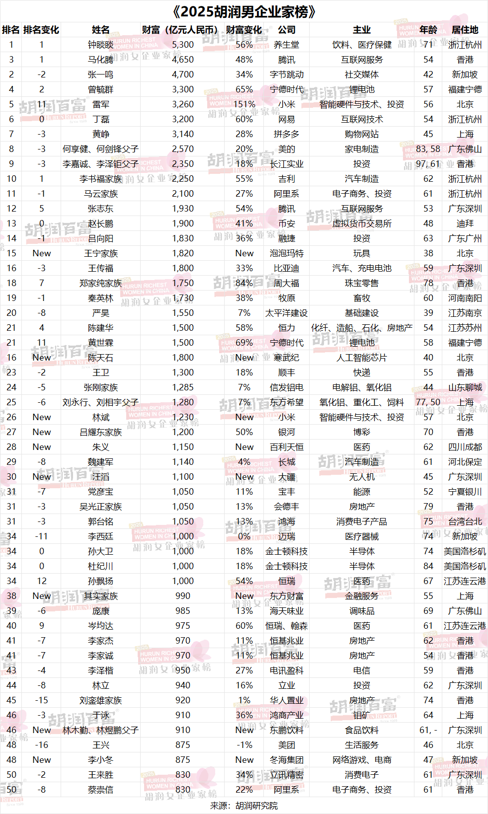附錄:《2025胡潤(rùn)男企業(yè)家榜》