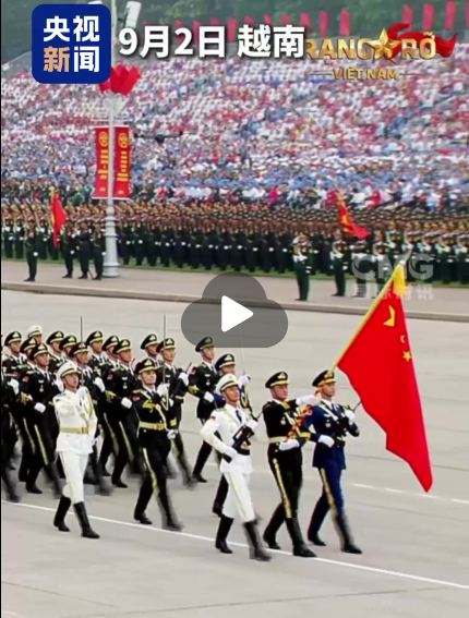 應(yīng)越南國防部邀請,中國人民解放軍儀仗司禮大隊(duì)抽組儀仗分隊(duì),參加越南今天(9月2日)舉行的八月革命暨越南國慶80周年紀(jì)念活動。中國軍人整齊的步伐和昂揚(yáng)的軍姿贏得了越南民眾的喝彩。除中國外,俄羅斯、柬埔寨、老撾、古巴和白俄羅斯等國部隊(duì)也受邀參加閱兵式。