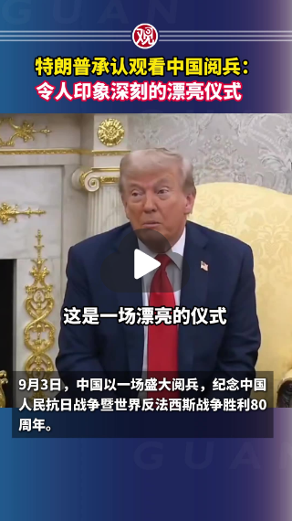 當(dāng)?shù)貢r(shí)間9月3日,美國總統(tǒng)特朗普承認(rèn),他觀看了中國舉行的抗戰(zhàn)勝利80周年閱兵。