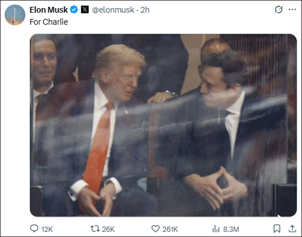 公開鬧翻幾個(gè)月后,美國總統(tǒng)特朗普與知名企業(yè)家馬斯克于9月21日在查理·柯克追悼會(huì)現(xiàn)場同框亮相,兩人相鄰而坐并握手交談。