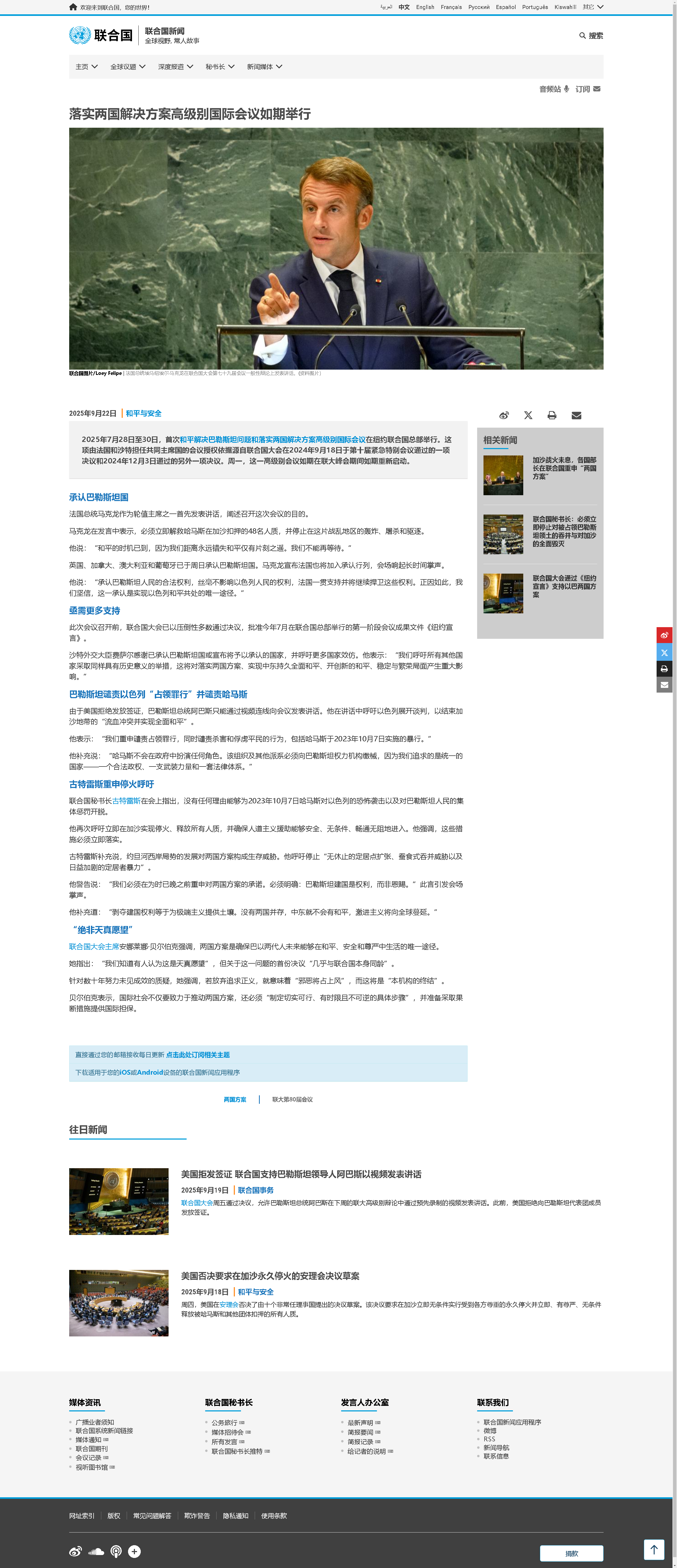 22日,和平解決巴勒斯坦問(wèn)題和落實(shí)兩國(guó)解決方案高級(jí)別國(guó)際會(huì)議在紐約聯(lián)合國(guó)總部舉行。