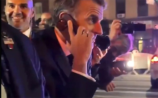 馬克龍在紐約街頭與路人合影 視頻截圖