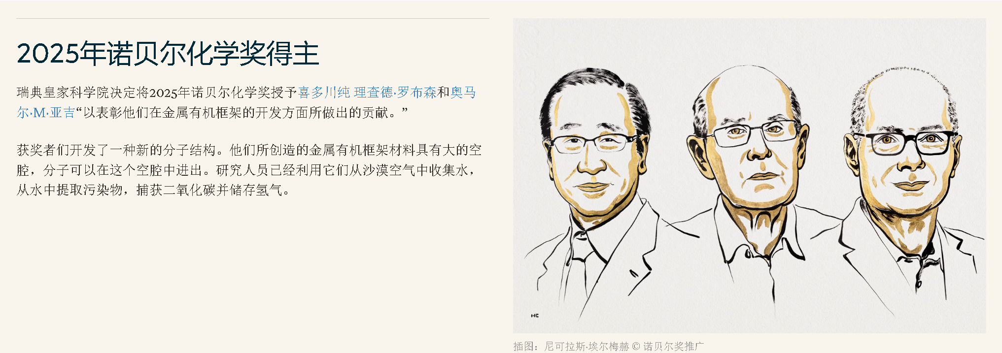 “金屬有機(jī)框架具有巨大的潛力,為實(shí)現(xiàn)具有新功能的定制化材料帶來了前所未有的機(jī)遇?!敝Z貝爾化學(xué)委員會(huì)主席海納·林克說。