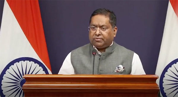 當(dāng)?shù)貢r間10月16日,印度外交部發(fā)言人蘭迪爾·賈伊斯瓦爾主持新聞發(fā)布會。 視頻截圖