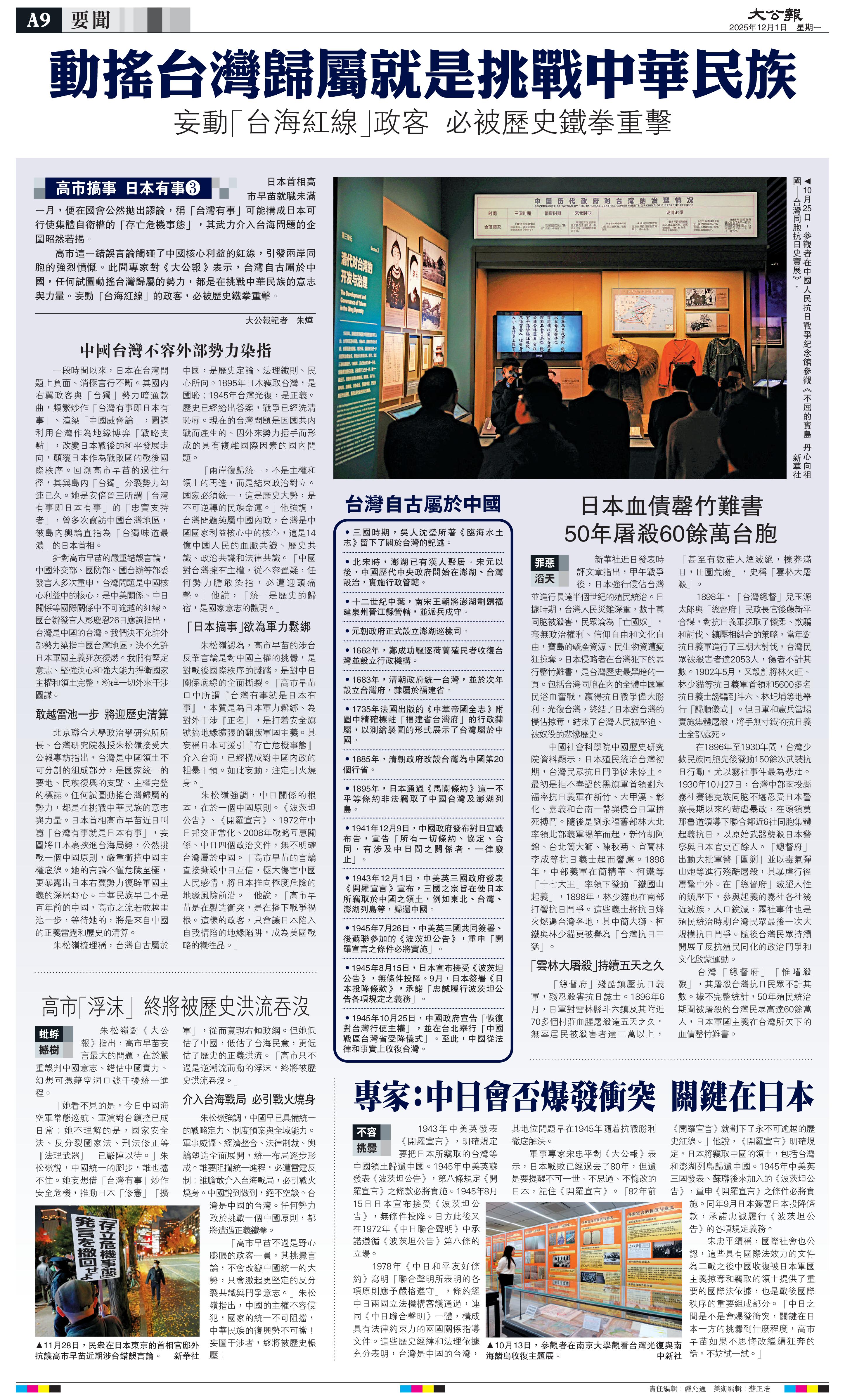 日方避而不談的,恐怕不僅僅是在臺(tái)灣問(wèn)題上的立場(chǎng)。今天是《開羅宣言》發(fā)表82周年。《開羅宣言》等一系列國(guó)際法律文件不僅明確了中國(guó)對(duì)臺(tái)灣的主權(quán),更是世界反法西斯戰(zhàn)爭(zhēng)的重大成果,構(gòu)成戰(zhàn)后國(guó)際秩序的重要組成部分。遵守其有關(guān)規(guī)定是日方必須承擔(dān)的國(guó)際法義務(wù),也是戰(zhàn)后日本重獲國(guó)際社會(huì)接納的前提?,F(xiàn)在日方只字不提具有充分國(guó)際法效力的上述文件,卻一味引用一個(gè)把受日本殖民侵略最嚴(yán)重的亞洲鄰國(guó)特別是中國(guó)排斥在外的文件,這是對(duì)日本軍國(guó)主義侵略慘痛記憶的漠視,對(duì)世界反法西斯戰(zhàn)爭(zhēng)歷史真相的褻瀆,對(duì)聯(lián)合國(guó)權(quán)威和戰(zhàn)后國(guó)際秩序的公然挑戰(zhàn)。日方近年來(lái)大幅調(diào)整安保政策,逐年增加防衛(wèi)預(yù)算,圖謀修改“無(wú)核三原則”。日本某些勢(shì)力正極力突破“和平憲法”束縛,企圖違背國(guó)際法規(guī)定的戰(zhàn)敗國(guó)義務(wù)。這些人從未真正汲取歷史教訓(xùn),從未真正直面和反思日本在戰(zhàn)爭(zhēng)中犯下的滔天罪責(zé),從未真正遏止軍國(guó)主義在日本死灰復(fù)燃,反而企圖用美化侵略的敘事和“避而不談”的手法,讓世人遺忘,為自己“松綁”。這種伎倆欺騙不了世人。