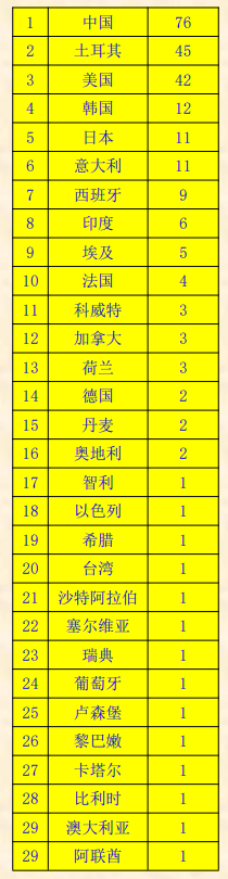 71 225 215 中國 CHINA BENGBU INT’L TECH. & ECON. COOP. LTD., Hefei City, China? 76.1 76.1 54.7 11 0 40 26 0 0 24 0 0