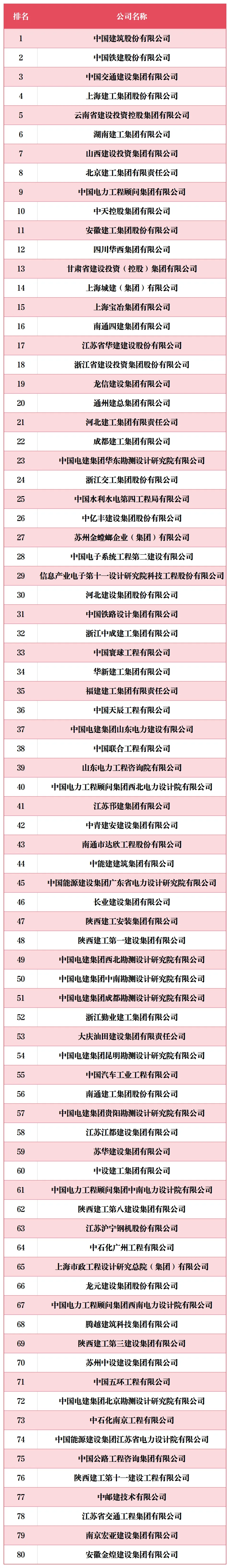 9月26日,美國《工程新聞記錄》(ENR)和中國《建筑時報》共同發(fā)布2025年度“中國承包商80強和工程設計企業(yè)60強”排名。中國建筑股份有限公司等80家承包商、中國電力工程顧問集團有限公司等60家工程設計企業(yè)入圍新一年度榜單。