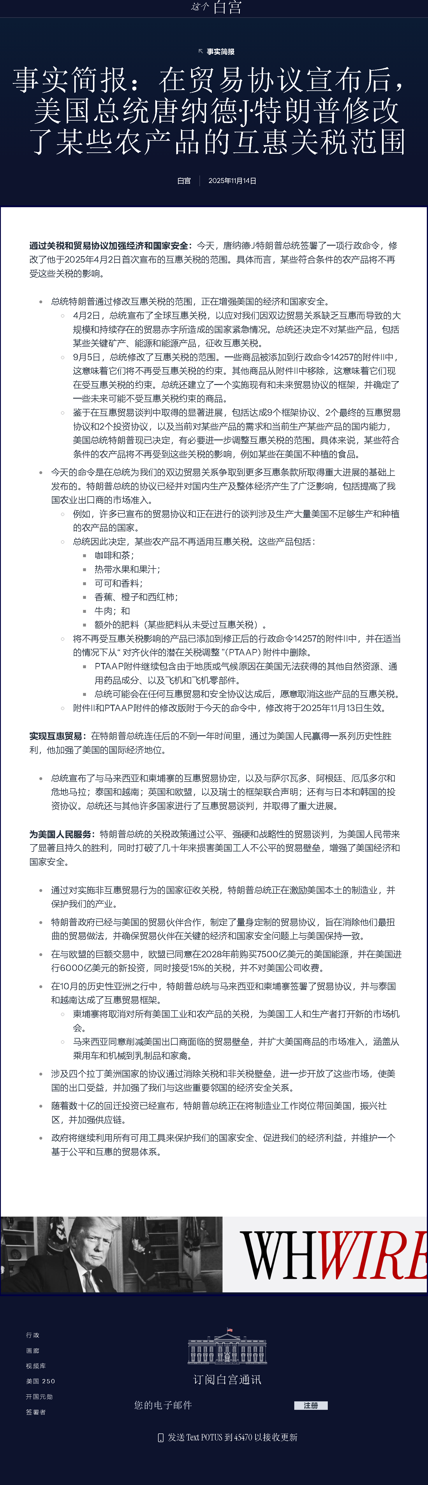 總統(tǒng)因此決定,某些農(nóng)產(chǎn)品不再適用互惠關(guān)稅。這些產(chǎn)品包括: