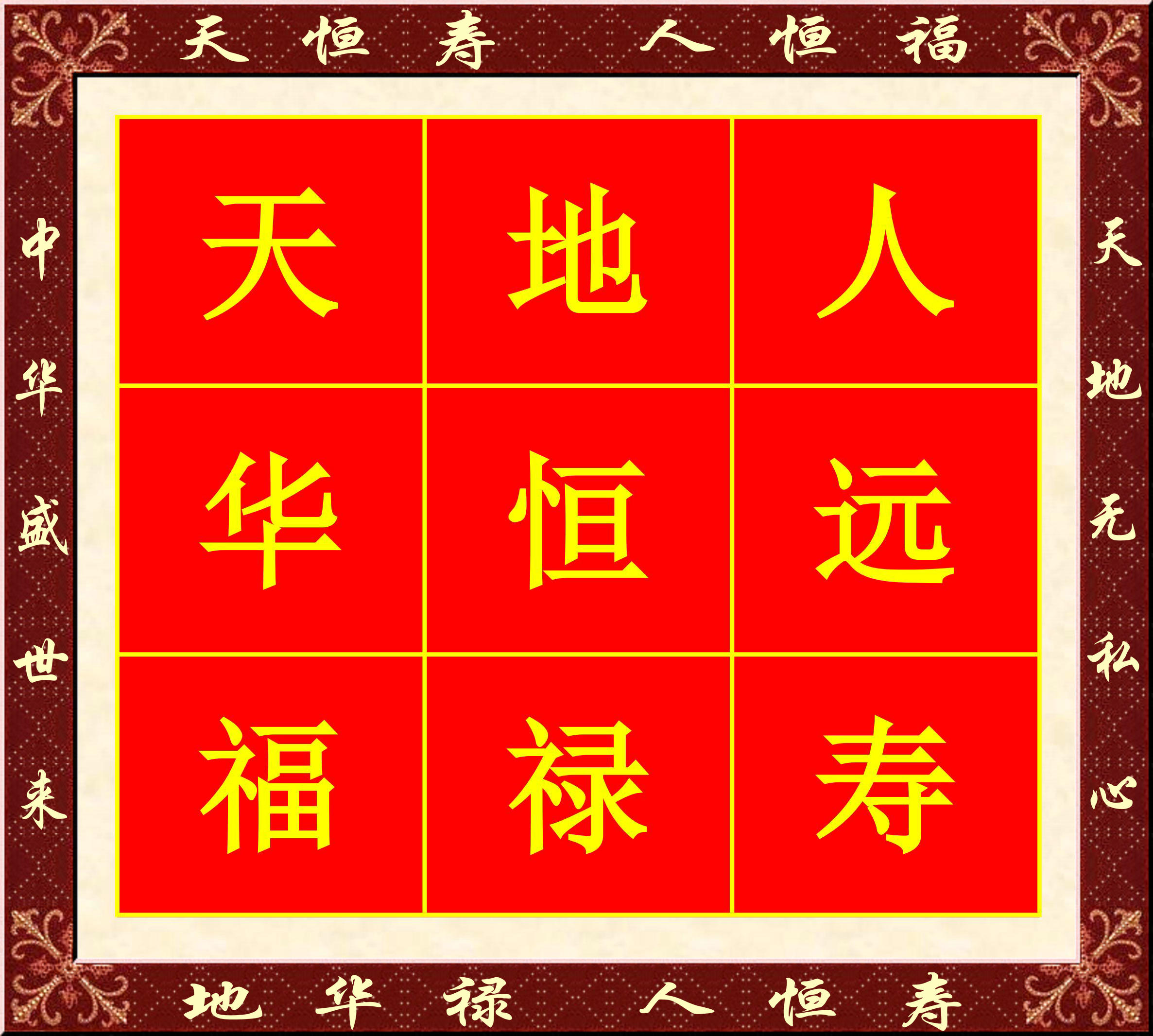 中華永恒久遠(yuǎn),天時(shí)地利人和,天恒壽人恒福,地華祿人恒壽,天意成就華恒遠(yuǎn)!